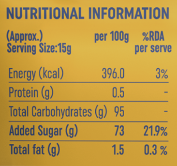 Sugar, Maltodextrin, Thickener (INS 415), Saffron (0.03%), Pistachio (3%)
